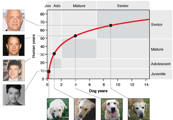 이 연구에 따르면 사람 나이와 강아지 나이의 관계는 다음과 같습니다.
