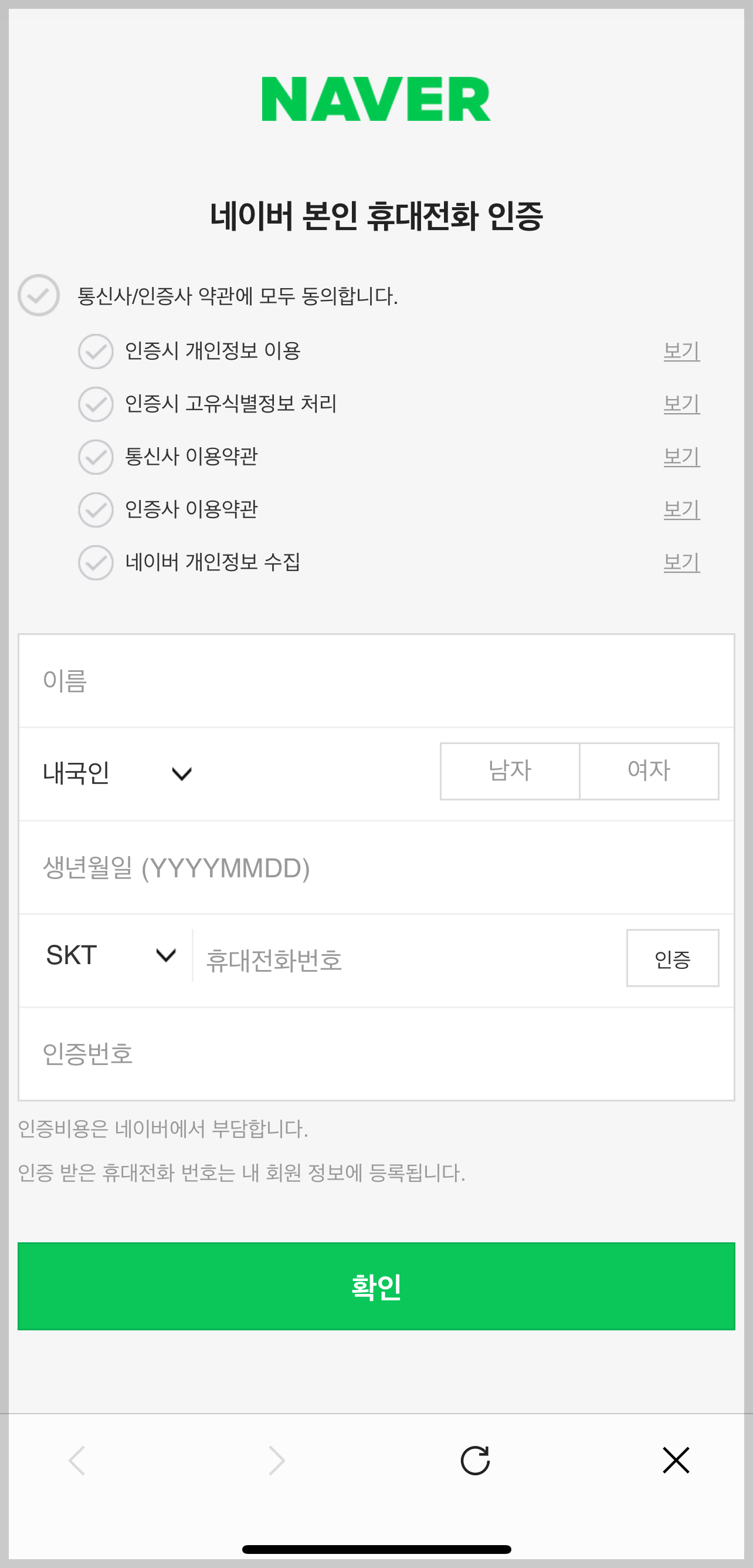 아이디를 클릭하시면 아래와 같은 화면이 나옵니다. 돈과 관련된 앱인만큼 인증절차가 있습니다. 하지만 정말 간단합니다. 이름과 생년월일, 휴대폰 번호 등만 입력하면 바로 인증할 수 있습니다.