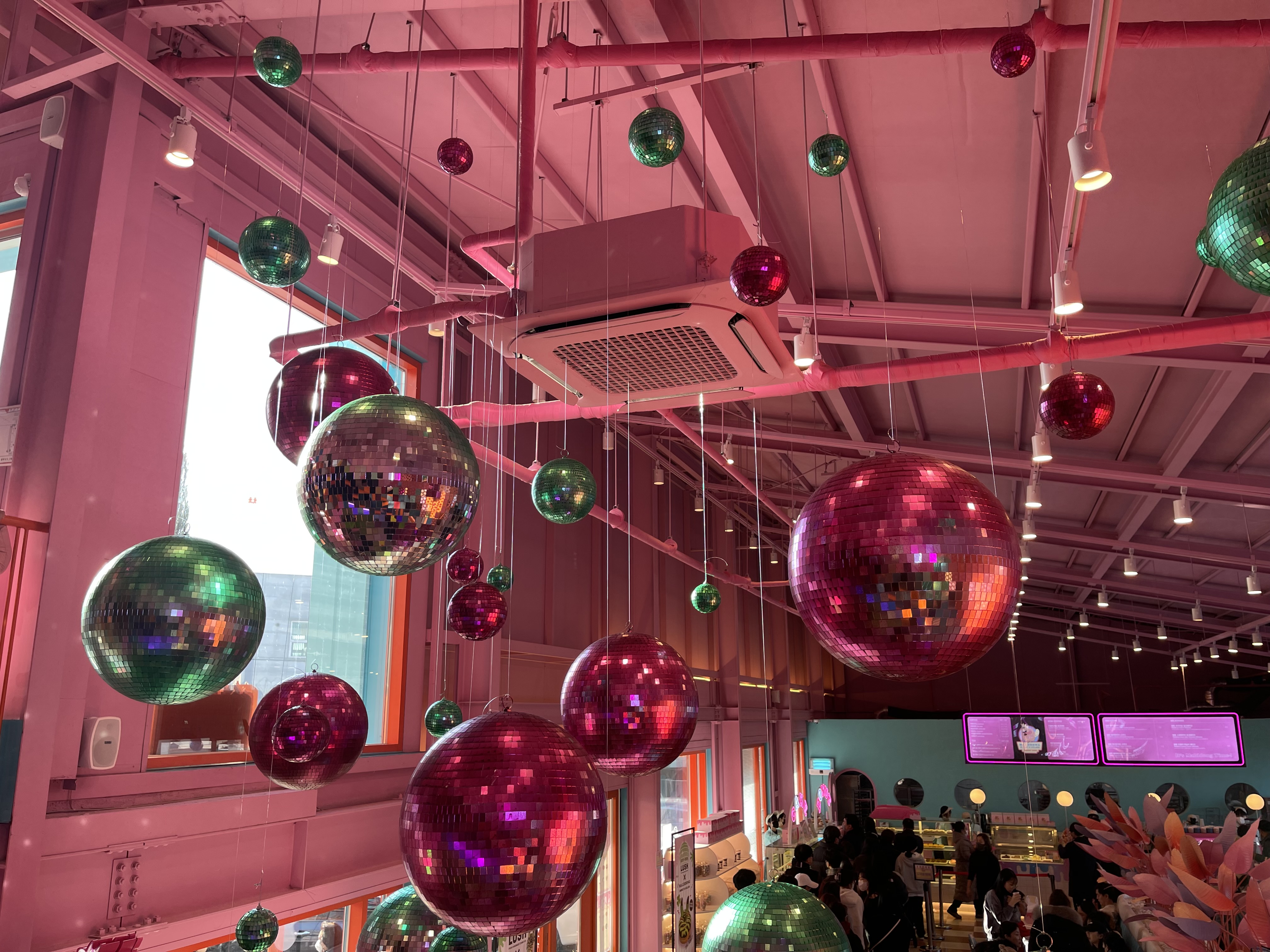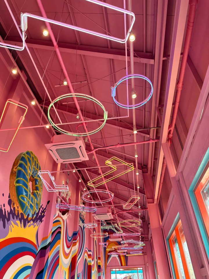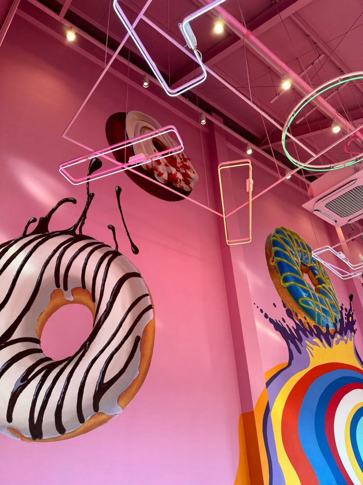 벽면에 보이는 도넛 장식은 가운데 공간이 있어 아이들이 들어가서 사진을 찍기도 했어요.