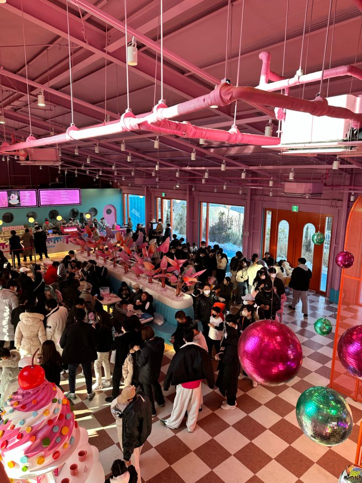 역시... 핑크톤의 파티장이었네요. 신나는 음악이 나오고 음식을 주문하기 위해 사람들이 줄지어 서 있었습니다.