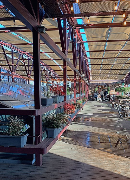 계단이나 엘리베이터로 올라가 보면 이렇게 야외에 설치된 테이블이 있습니다. 겨울에는 춥지만 여름이나 날씨가 좋을 때에는 아주 좋을 것 같습니다.