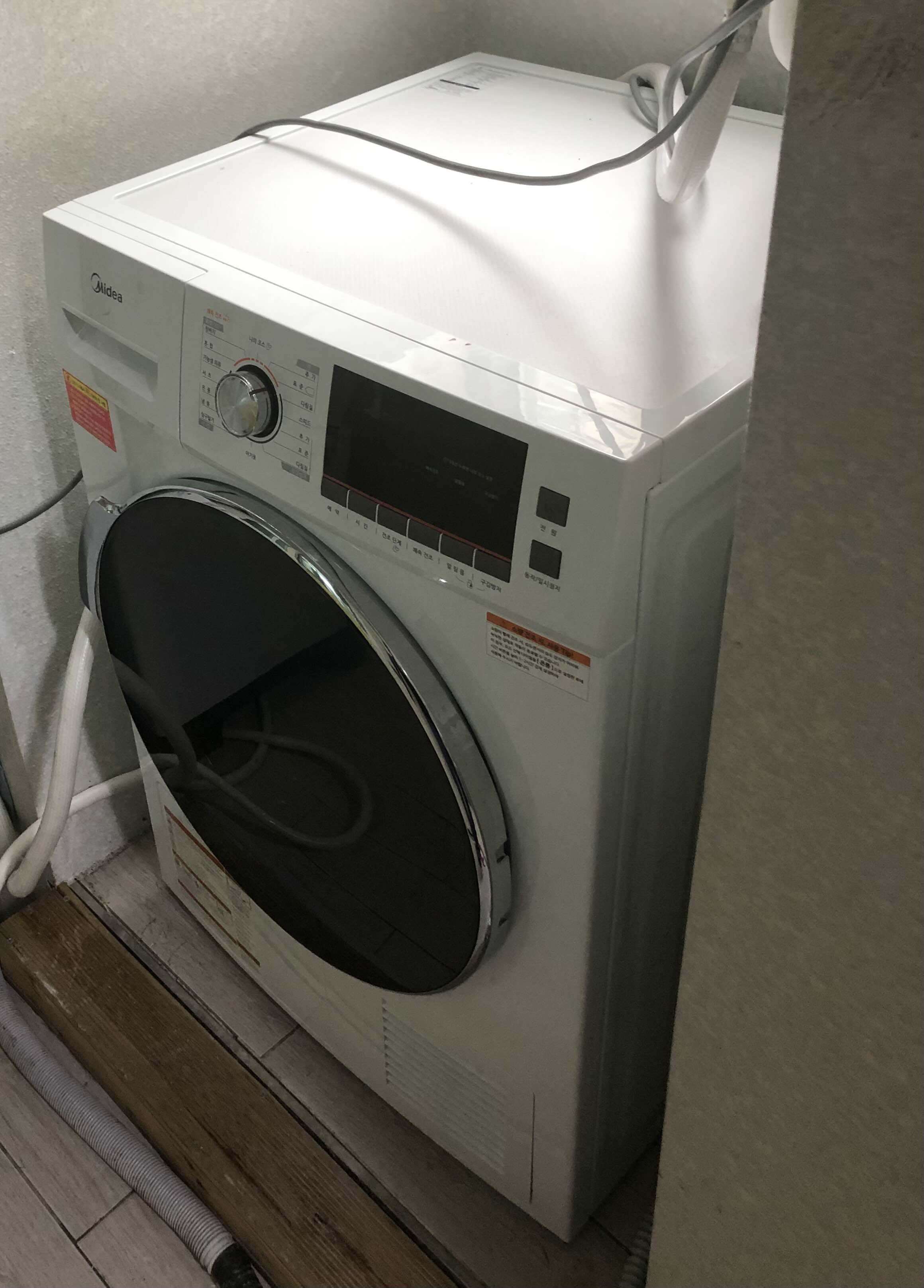 2020년에 처음으로 건조기를 구입하고 사용하기 시작했습니다. 아래 사진에서 보이는 8kg 용량의 미디어(Midea) 건조기였습니다. 가격도 저렴했고 성능도 괜찮았습니다. 미디어(Midea)가 중국의 가전 제조업체라 다소 생소했지만 제품을 사용하는데에는 별 문제가 없었고, 유용하게 잘 사용했습니다.