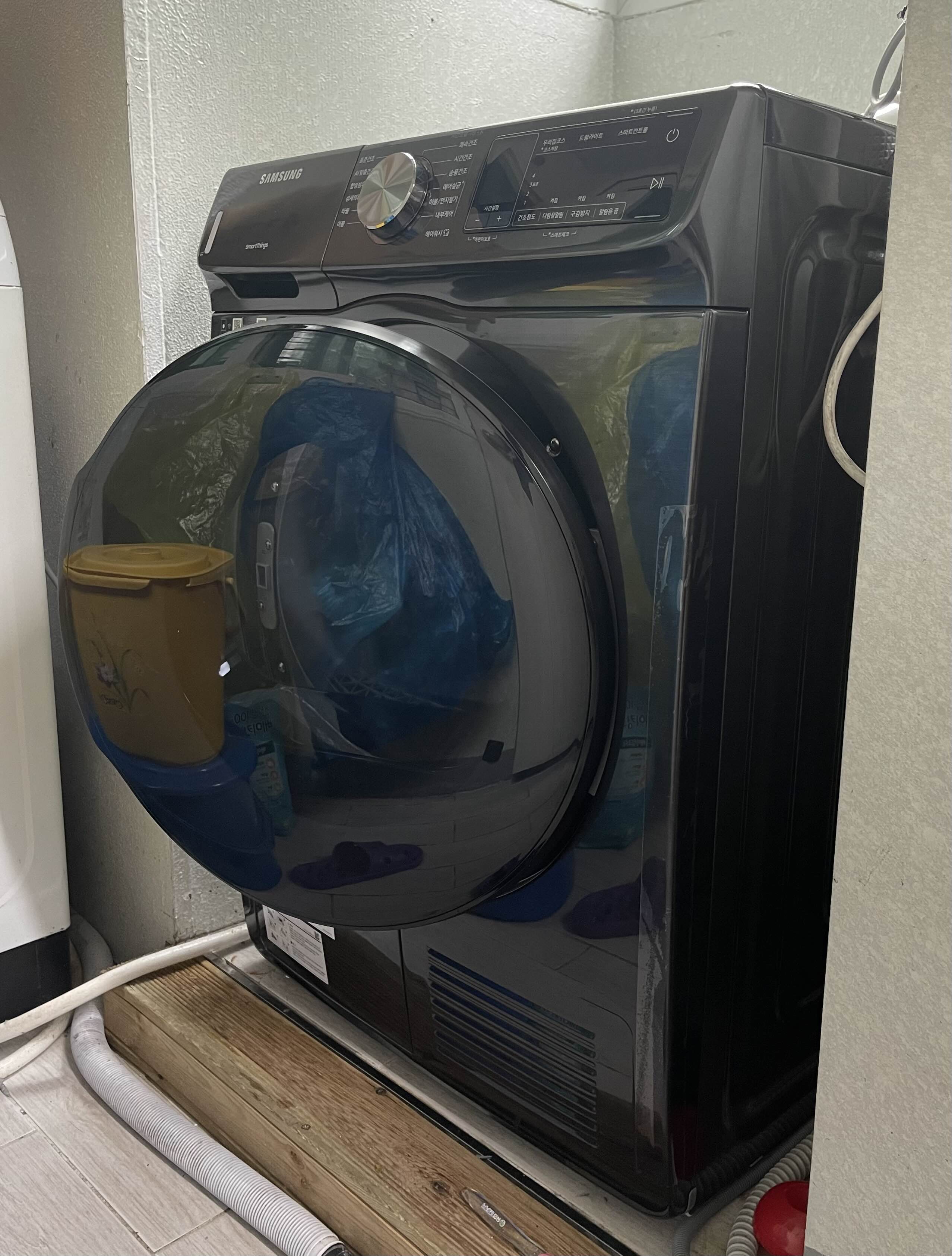 다만 약간 불편한 점도 있었습니다. 단적으로 건조기를 돌릴 때 아주 뜨거워진다는 점이었습니다. 특히 더운 여름에는 세탁실에 들어가기가 부담스러울 정도로 열이 발생했습니다. 가뜩이나 더운 날씨에 뜨거운 건조기까지 돌아가고 있으니 한층 더 더워지는 느낌이었지만, 건조기가 원래 열이 나는 제품이라고 생각해 그러려니 했습니다. 건조기가 돌아갈 때 건조기 윗부분을 손으로 만져보면 꽤 뜨거웠습니다.