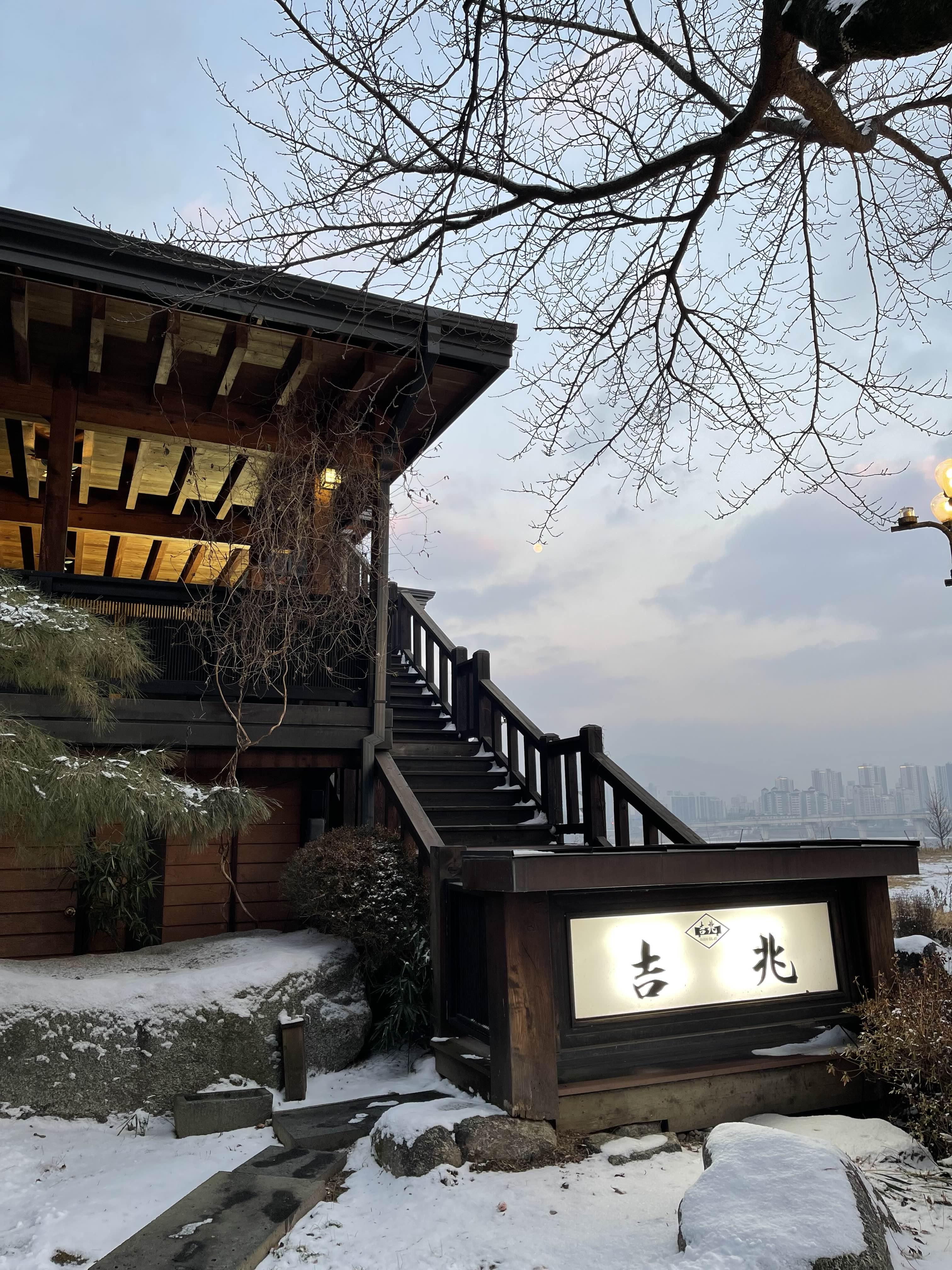 눈 많이 내린날 양평길조호텔에서 여유로운 일본을 느낄수있었다.