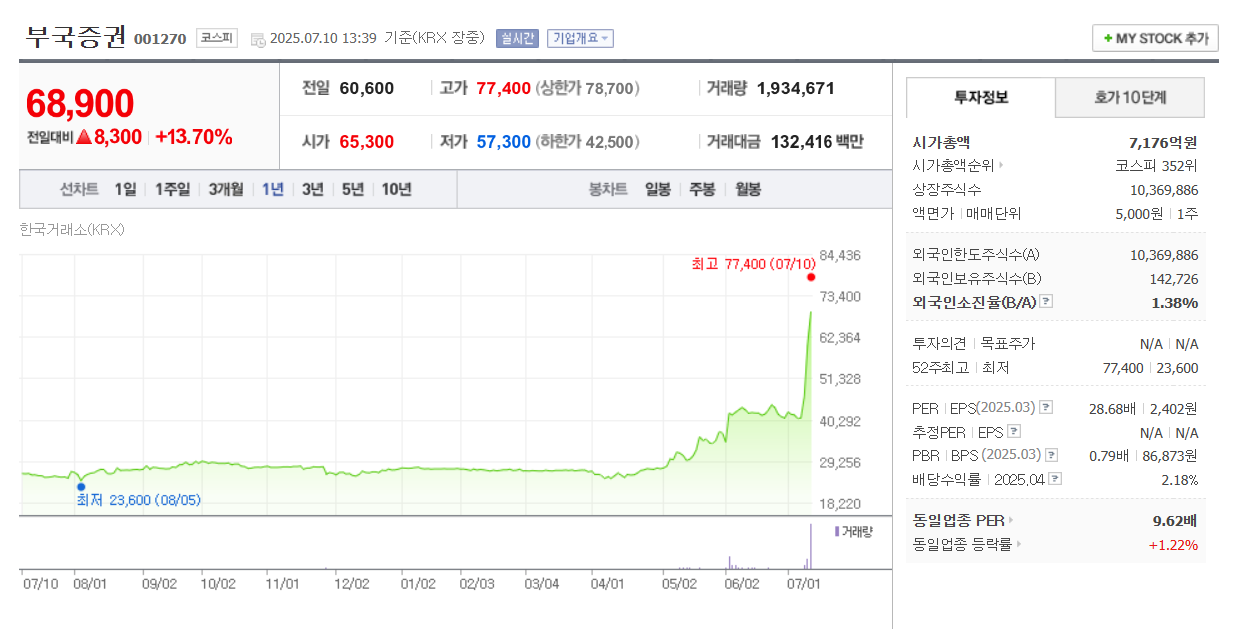 이와 함께 PBR이 낮은 업종으로 증권주를 들 수 있습니다. 신영증권의 경우 자사주 비중이 무려 53.1%에 달하는데요. 그러다 보니 주가가 큰 폭으로 상승했습니다. 부국증권은 상한가를 기록했고, 대신증권과 미래에셋증권도 크게 올랐습니다.