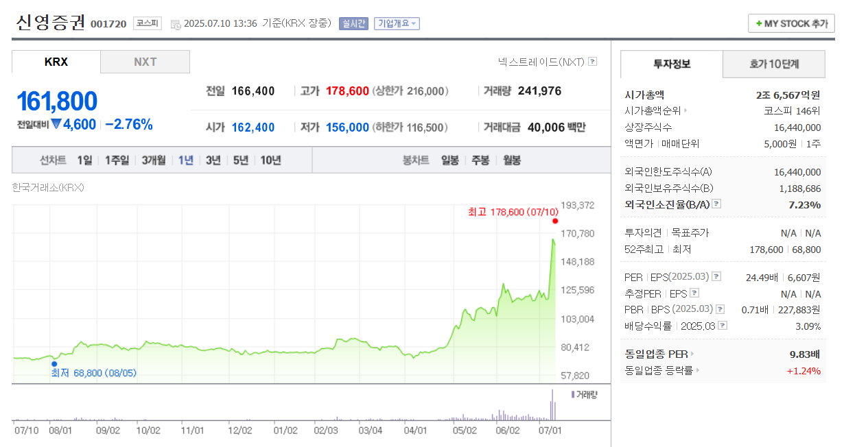 이와 함께 PBR이 낮은 업종으로 증권주를 들 수 있습니다. 신영증권의 경우 자사주 비중이 무려 53.1%에 달하는데요. 그러다 보니 주가가 큰 폭으로 상승했습니다. 부국증권은 상한가를 기록했고, 대신증권과 미래에셋증권도 크게 올랐습니다.