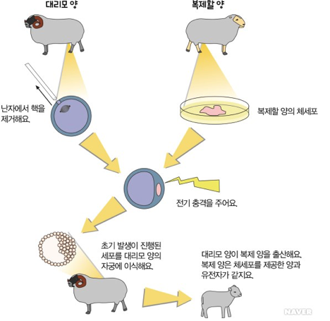 여기서 잠시 복제, 좀더 정확히는 동물복제에 관해 살펴볼 필요가 있습니다. 동물이 태어나려면 정자와 난자가 만나서 수정이 되어야 합니다. 하지만 동물복제는 다른 방식으로 진행됩니다.