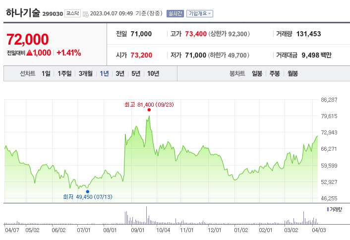 최근 하나기술의 주가가 다소 부진한 모습을 보였는데요. 작년 8월에 급등한 이후 하락세를 지속하다가 올해 들어 조금씩 반등하고 있는 모습입니다.